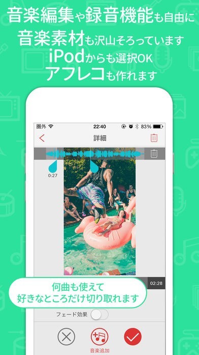 写真、動画、音楽、テキスト、メッセージを自在に加工・編集可能