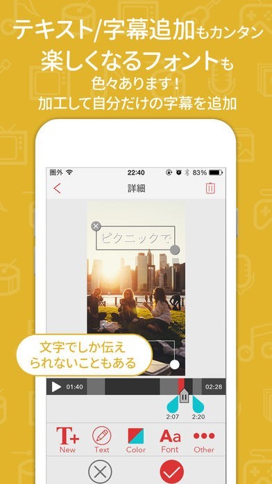 動画の好きな位置にメッセージや音楽、テキストの挿入が可能