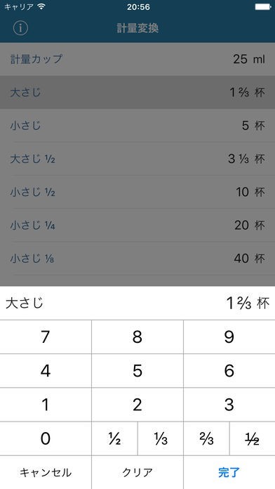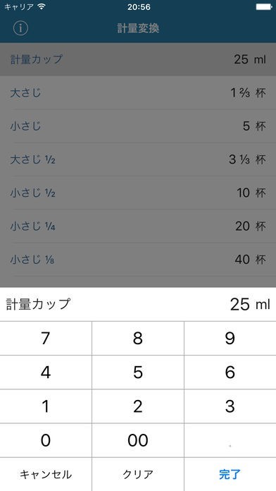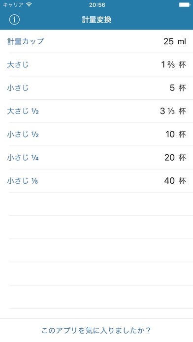 何ミリリットルで大さじ、小さじで何杯になるか、大さじ、小さじ何杯で何ミリリットルを変換計算するアプリです。料理のお供にお使いください。