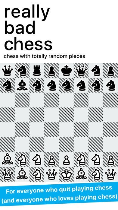 App Storeより引用Really Bad Chess is just like chess, but with totally random pieces. Try 8 Knights, 4 Bishops, and 3 pawns — why not?