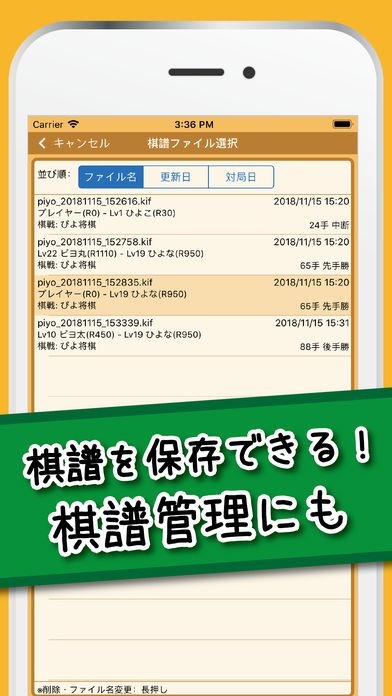 AIとの本格的な対局を楽しめる将棋アプリが「ぴよ将棋」です。AIのレベルは30段階用意されており、将棋を始めたばかりの方でも自分に合ったレベルで練習できます。プレイヤーが二人いる場合は、本格的な将棋アプリとして対局を行うことも可能です。また、対局後はそれぞれの指し手がどのように形勢に影響を与えていたかをグラフで振り返ることができます。感想戦を行って上達したいと考えている方にとって便利な要素です。また、棋譜を残しておけるなど情報を補完するツールとしても有用です。