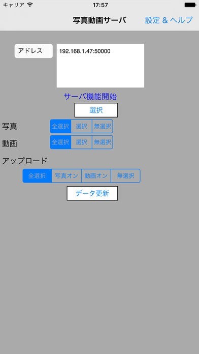 また、アップロードできる種類も、全選択、写真オン、動画オン、無選択に設定できます。