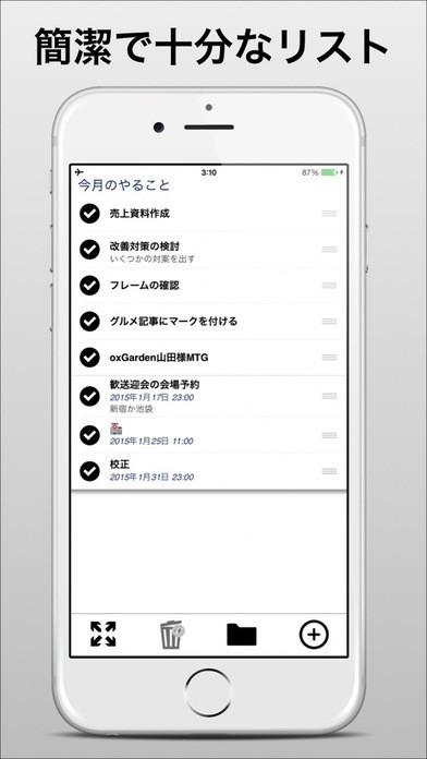 細かなタスク管理に便利なチェックリスト機能搭載。タップするだけで簡単にチェックがつけられる!