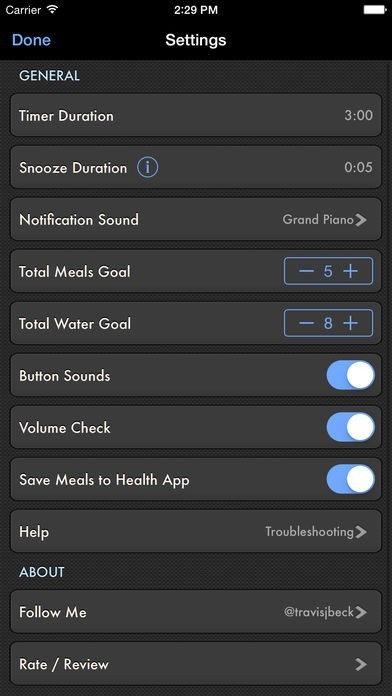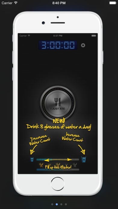 3 Hour Diet Reminder reminds you every 3 hours to eat and keeps track of how many meals you've eaten that day towards your meal goal. 3 Hour Diet Reminder also keeps track of how many glasses of water you've drank throughout the day to make sure you reach your goal.