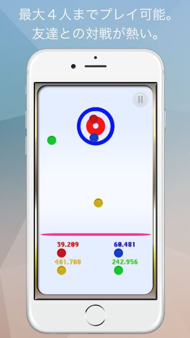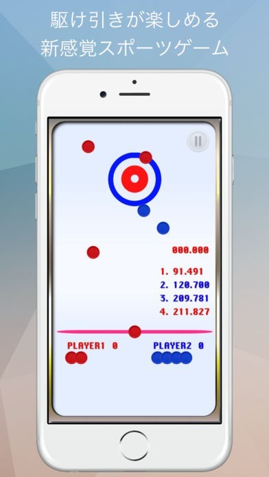 App Storeより引用累計5万DL突破!!!!最大4人で楽しめる簡単カーリング。