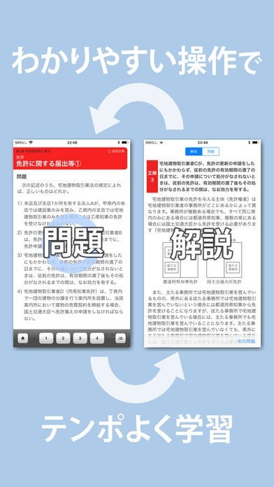 宅建士試験合格のために役立つ問題をスマートフォンで気軽に練習できる!