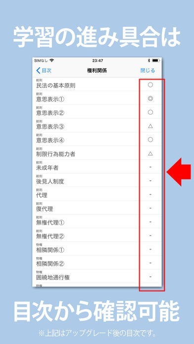 目次で学習の進み具合を確認できるので学習スケジュールを立てやすい!