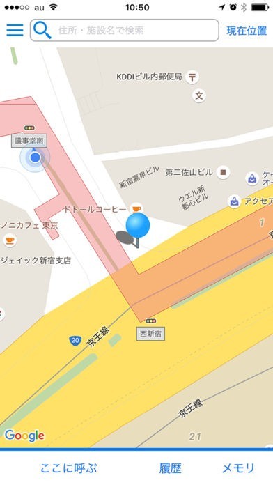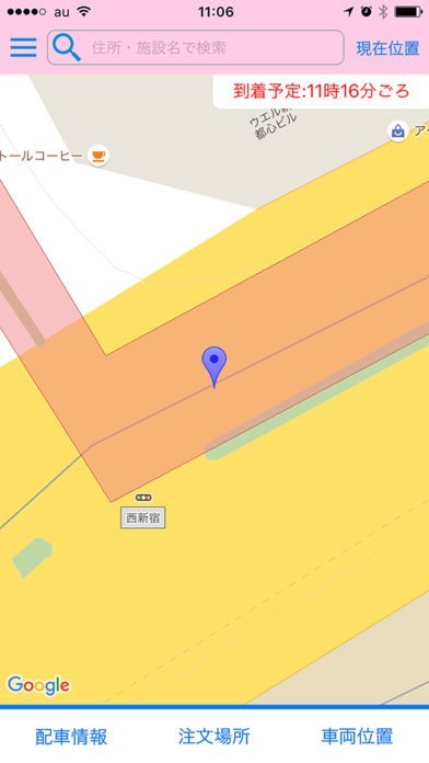 1.地図のGPS機能から、地図上または住所・建物名でタクシーのお迎え場所を簡単に指定することが可能です。
