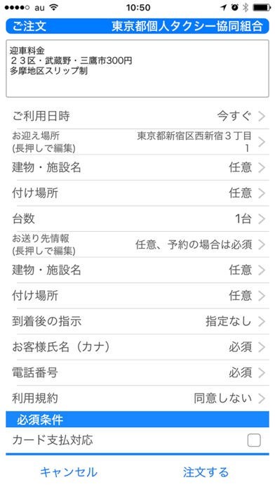 3.このアプリを利用してタクシーを手配した場合、電話注文と同様に「迎車料金」がかかります。