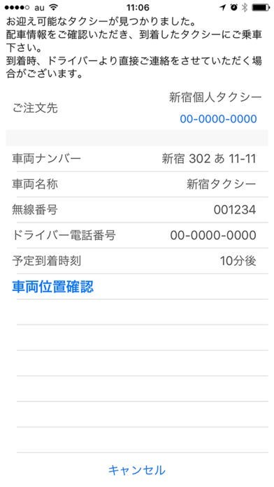 個人タクシーのスクリーンショット