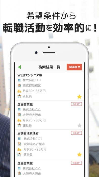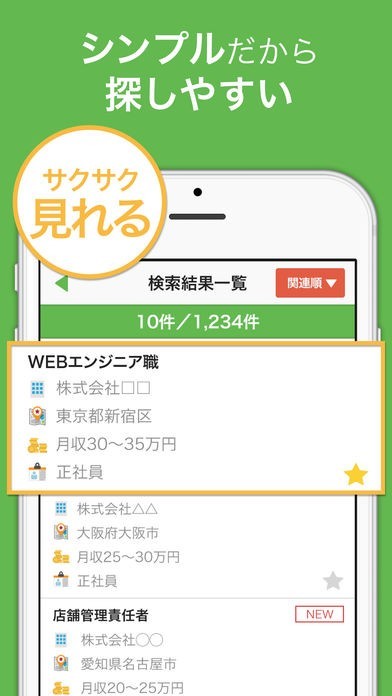 *本アプリの使用にはインターネットに接続されている必要があります。オフライン状態で求人情報の検索および閲覧は行えません。