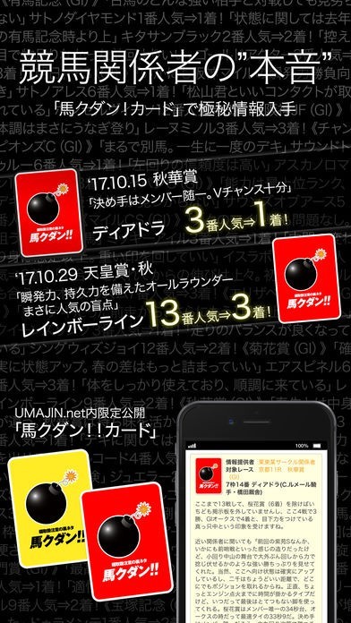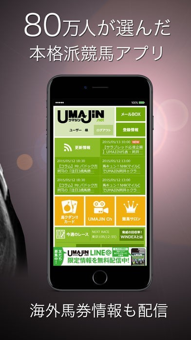 馬券・競馬予想はUMAJIN.net!競馬情報アプリは、馬券対象馬を判別可能な競馬予想指標「WINDEX」など、競馬ライフを刺激してくれる競馬好きのためのアプリです。