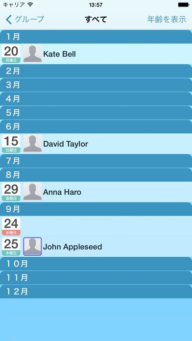 親族や友人関係の誕生日を覚えるだけでも大変なのに、サラリーマンをしていると上司や同僚等、誕生日管理は圧倒的に大変になります。そこで、オススメしたいのがこの「誕生日リスト」です。このアプリは連絡先からそのまま誕生日を引っ張ってくれるので、面倒な入力が不要です。更に1週間前後の人を教えてくれたり、年齢を表示してくれたりと、痒い所に手が届きます。このアプリさえあれば、お世話になっている方の誕生日を忘れずに、気の利いた一言をかける事が出来ます。また、星座を表示させる事が出来るので、恋人の細かい情報を忘れて怒られる事もありません。アプリ内には編集が無く、連絡先のみで編集するので、全ての相手の情報を連絡先に整理する事が出来ます。