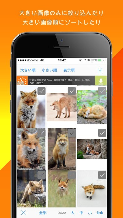 画像を大きさで並び替えることができることから、自分の都合にあったものを選択することが出来る