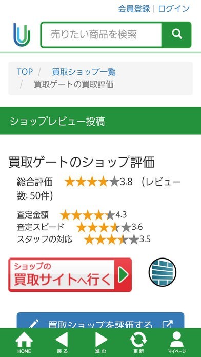 各ショップの買取サイトへもタップ一つでアクセス可能!
