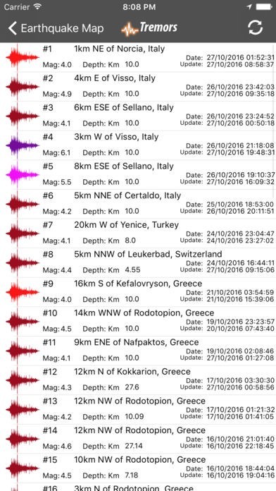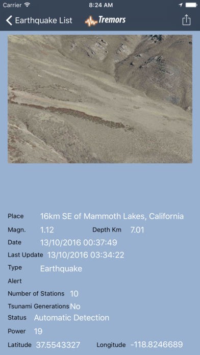 「Tremors」は、スマートフォンで世界中で発生した地震の情報をチェックすることができるアプリとなっていて、マップ上に地震の発生した場所を表示することができます。