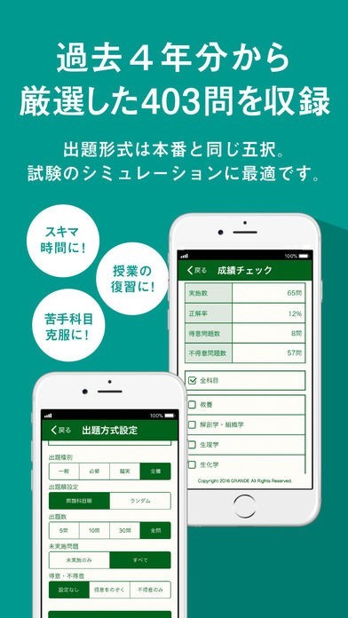 App Storeより引用このアプリは歯科医師を目指す【2018年2月実施の第111回歯科医師国家試験】受験者のための国家試験対策アプリです。最新(2017年2月実施分)の過去問も含む、過去4年分の歯科医師国家試験試験の問題の中から専門家指導のもと、厳選した問題403問を収録。全科目を収録し、本番さながらの五択問題形式で、過去問を学習することができます。