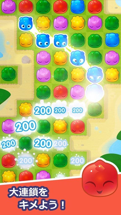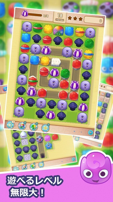 同じ色のジェリーたちをつなげてモンスターをやっつけるパズルゲーム!