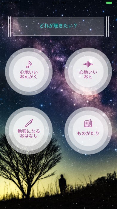 明日も朝が早いから早く寝なくちゃいけないのに、そんなときに限って眠れない。こんな経験ありませんか?このアプリはそんなあなたに癒しの音楽や物語でリラックス効果を与えて、自然と睡眠に導いてくれます。