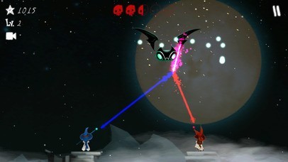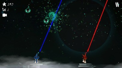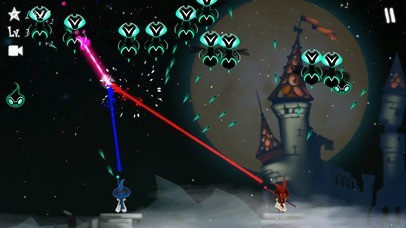 異なる2カラーの光を使ってプレイする「Twinlight」は、夜空に現れる敵をすかさず見つけ光線で撃退するゲームです。 青と赤の光線2本を合わせることで強力な紫にパワーアップし、この大きな光線で敵を打ち落とすことができます。クリアしていくうちに敵の力は増大!この平和で美しい夜空を守るために各ダンジョンに登場する天敵ボスをその都度ノックアウトしていくシューティングゲームです。1本の光線にすることでターゲットに集中しやすくなるので動作は単調で気楽に楽しむことができます。