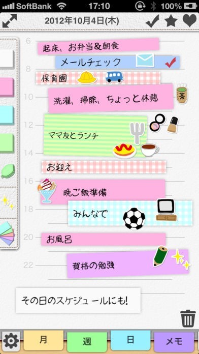 月、週、日、メモの他にオリジナル項目で自分メモに!