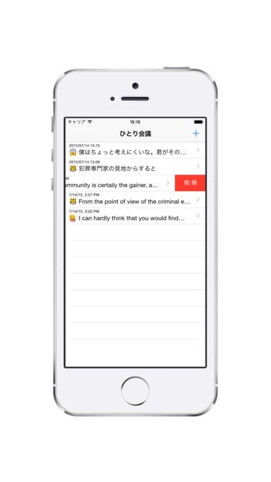 「ひとり会議」はSNSチャットのタイムラインのような形式でメモを取ることができ、それぞれの項目に別々のアイコンを設定したり、アイコンごとに吹き出しやテキストの色を設定できるので、単なる箇条書きメモアプリとして使えるだけでなく、演劇のシナリオを作ったり簡単な議事録を取ったりする用途に向いています。本物のSNSとは違いメモの修正やタイムライン内の順番の入れ替えも可能なので柔軟な編集を行えます。またユーザー登録をすることでデータをクラウドにバックアップしたり、クラウドからデータを同期したりもでき、一人で複数のデバイスを使っている場合も便利です。おまけで他のユーザーと本当にチャットできる機能もついているので、真剣な作業の合間の息抜きにも使えます。
