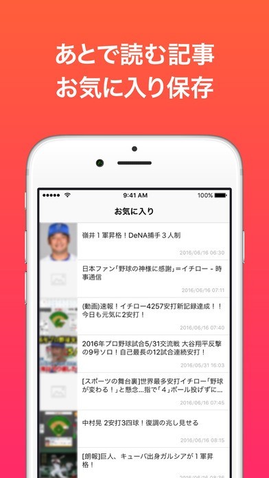 野球に関するコンテンツが収録されていて、気になるニュースをまとめて閲覧出来るようになっています。さらに記事をお気に入りに保管しておけるため、通勤中や移動中にまとめて情報を入手したい時に便利でしょう。