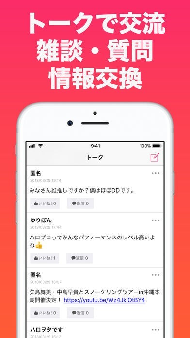 ハロプロファン同士でトークをして交流することができます。