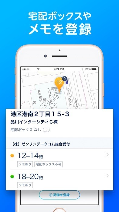 配達時間や宅配ボックスなどの詳細情報を地図上にタップして簡単に登録することが可能なので配達前の忙しい時間にサッとでき助かっています。
