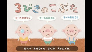 「3匹のこぶた〜しかけ絵本シリーズ〜」は、人気絵本の3匹のこぶたが題材となっているアプリです。アプリ内にはヒーとフー、ミーという3匹のブタが登場し、それぞれの視点で物語を読むことができるので3度楽しめる仕組みになっています。物語の途中では絵が動いたり、息を吹きかけるモーションが必要となってくるので、普通の絵本とは違った体感型の絵本になっています。お子様と一緒に読み聞かせをしながら進むと、親子のコミュニケーションにも繋がり楽しいです。
