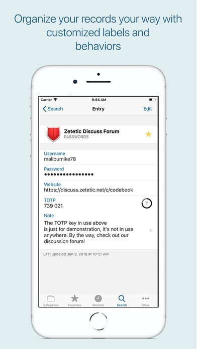 * Customize your entries including usernames, passwords, websites, notes and create your own fields and labels