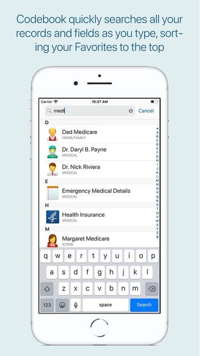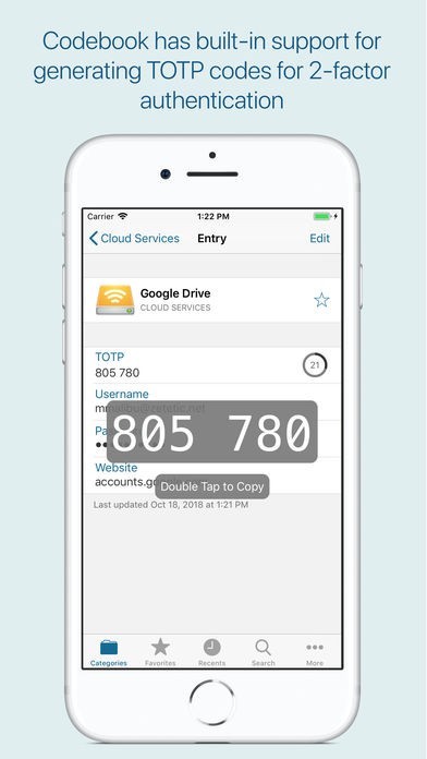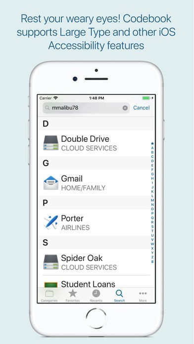 Codebook has been protecting sensitive information on mobile devices for 19 years, since the days of the Palm Pilot! It protects your passwords and personal information from unauthorized access by would-be crackers, malicious thieves, and snoopy coworkers. Stop using the same password for all your accounts! Codebook generates strong, random passwords and keeps them for you, protected by your master password and powerful encryption.