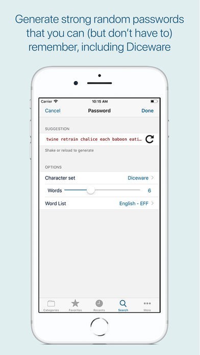 * The password generator also supports Diceware passwords—both the Reinhold and Electronic Frontier Foundation variants