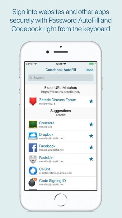 Codebook for iOS is designed to work seamlessly with Codebook for macOS and Windows, sold separately. Sync your information with Codebook on your desktop for easy editing, data backup, import and export, integration with other apps and more. Check out https://www.zetetic.net/codebook/ for more details and a product tour for all platforms we support.