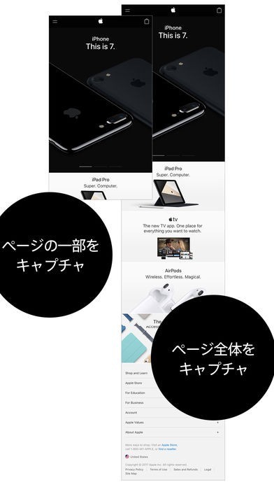 App Storeより引用MobWeb.Goodyはウェブページ全体を丸ごとキャプチャできます。