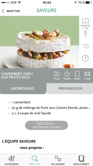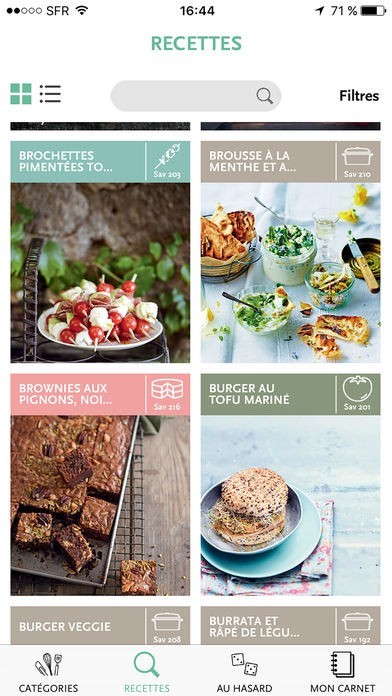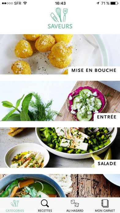 Plus de 700 recettes végétariennes du magazine Saveurs disponibles sur votre iPhone à tout moment même hors connexion (préparation, photos, ingrédients...)