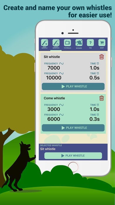 CREATE YOUR OWN WHISTLES – Create your own whistle by adjusting the frequency and time. You can create a one-sound whistle or combine many sounds in one whistle. You can also play it anytime to hear how it sounds.