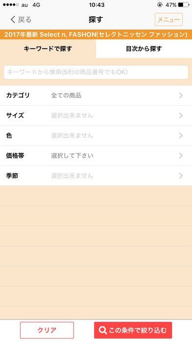 サイズ・キーワードで検索できる!気に入った商品はその場で購入が可能