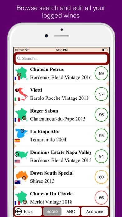 どの銘柄のワインを飲もうか迷った時には本アプリを起動してみましょう。これまでに飲んだワインの中から好みの味のワインを見つけることができます。どのタイプの食事に合うかも記録しておきましょう。