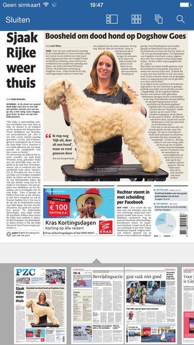 App Storeより引用Lees nu al het nieuws van de PZC met de digitale krant voor iPad. De digitale krant ziet er precies hetzelfde uit als de papieren krant en beschikt over alle editiekaternen. Ook de inhoud is exact gelijk, met alle artikelen, foto’s, advertenties, familieberichten, puzzels en bijlagen alleen dan heel handig op uw tablet.