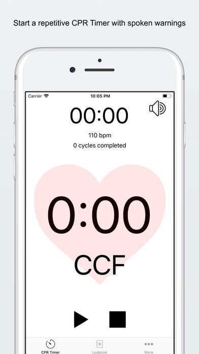CPR Timerは、救急隊員が心肺蘇生中の圧縮リズムを維持するためにサポートする