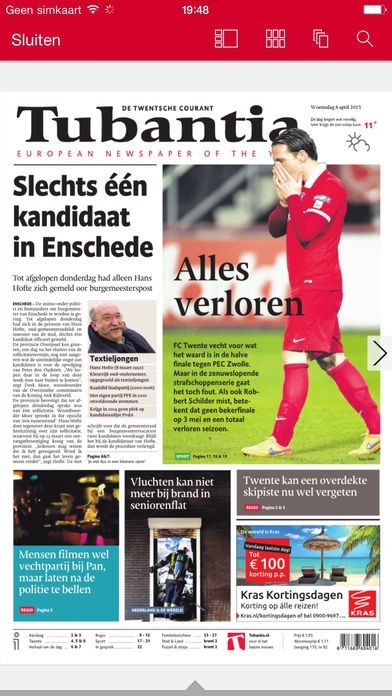 App Storeより引用Lees nu al het nieuws van De Twentsche Courant Tubantia met de digitale krant voor iPad. De digitale krant ziet er precies hetzelfde uit als de papieren krant en beschikt over alle editiekaternen. Ook de inhoud is exact gelijk, met alle artikelen, foto’s, advertenties, familieberichten, puzzels en bijlagen alleen dan heel handig op uw tablet.