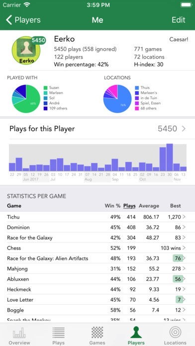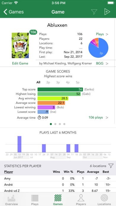 複数のゲームを登録する事が可能で、プレイヤー別にスコアや得点が登録出来るようになっています。グラフの表示に対応しているので、順位や結果を素早く確認したい時に便利ですね。