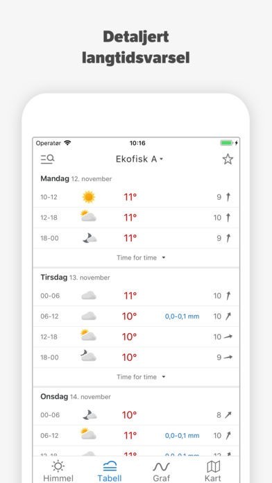 グラフで一定時間ごとの天気予報を確認でき、分かりやすい