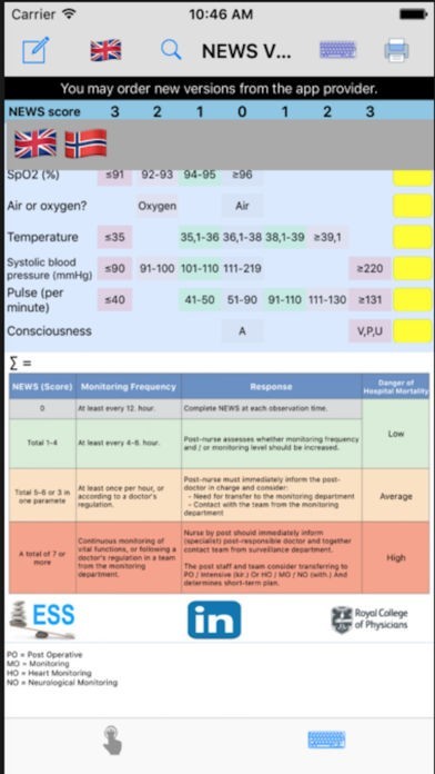 App Storeより引用NEWS - National Early Warning Score (skjema) er utviklet av The Royal College of Physicians (RCP).