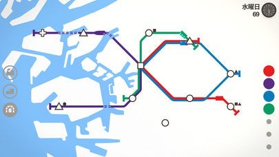 世界で稼働中の地下鉄をテーマにした経営シミュレーションゲームで、ミニメトロの特徴はパズルの要素も含んでいることです。つまり、発展のみを目的とするのではなく、混雑などの運営停止によるゲームオーバーを意識し、線路を効率よく配置しなければなりません。画面は日本でもよく使われている地下鉄路線マップ風の構成となっており、ひと目で全体が見渡せるような見やすさにも工夫が凝らされています。