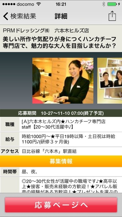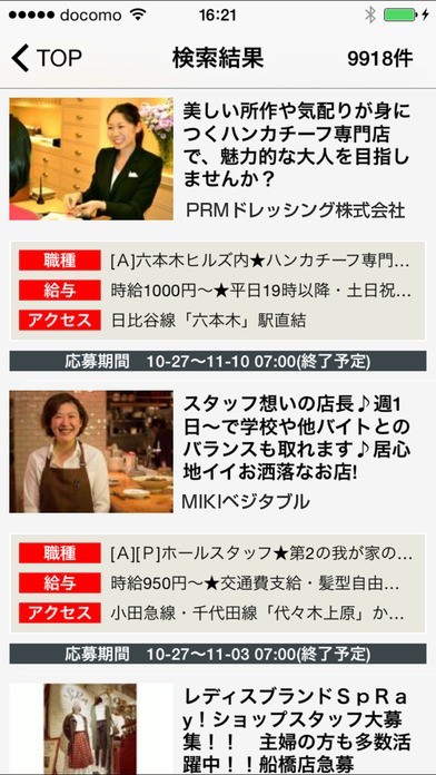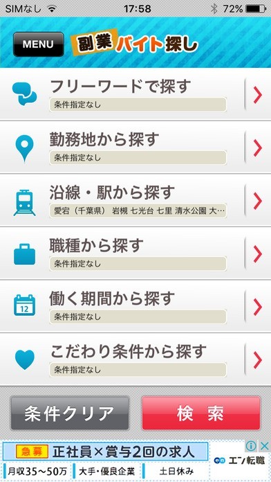 アルバイト情報を検索できるアプリであり、