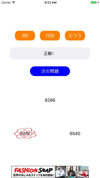 次々と数字が表示されるのでその合計を三択から選んで暗算能力を鍛えましょう。