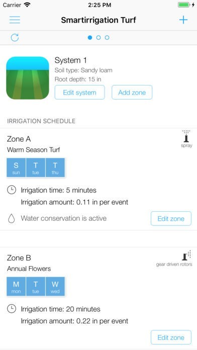 App Storeより引用This app is designed to help urban turf irrigators in Florida and Georgia, USA to generate irrigation schedule recommendations based on real-time weather and short-term forecasted data to better meet the plant water needs of a given period, conserving water while also minimizing nutrient leaching from the root zone due to excessive irrigation.