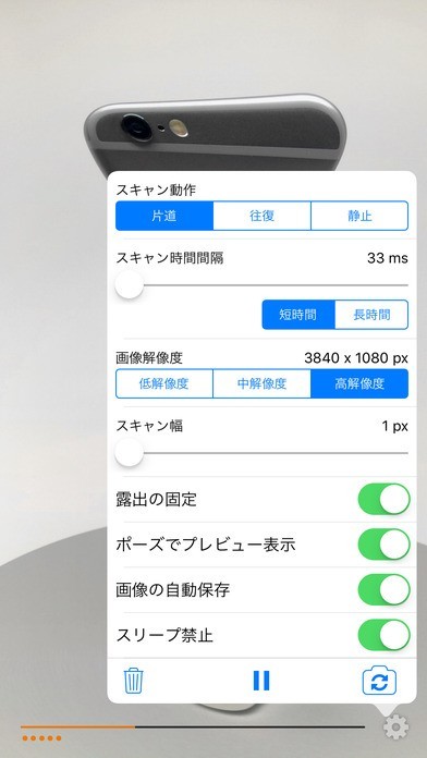 App Storeより引用Timetracksはスリット・スキャン方式によってカメラ映像を表示し、撮影するアプリケーションです。スキャナーのように時間をかけて画像を作り出すので、動きのある物体や風景を撮影すると面白い効果が得られます。iPhoneを立てかけるなど固定して撮影するときれいな画像になります。